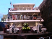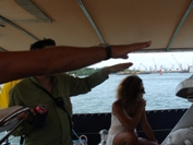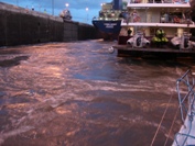 Tourists on the catamaran Discovery come outside to see the lock in action