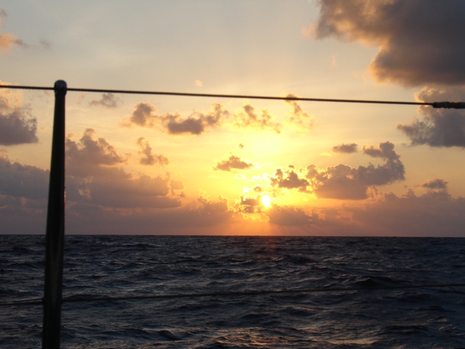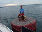 Michael at dawn on the Gatun mooring site (literally on the mooring)