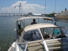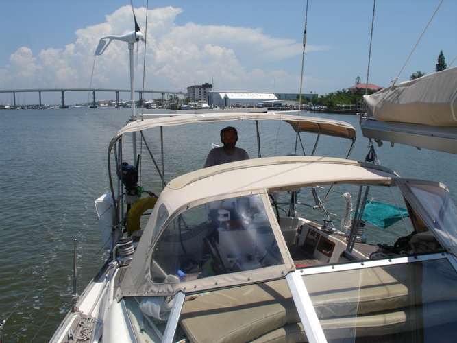 Not much wind on the Gulf; Michael takes a moment to relax.