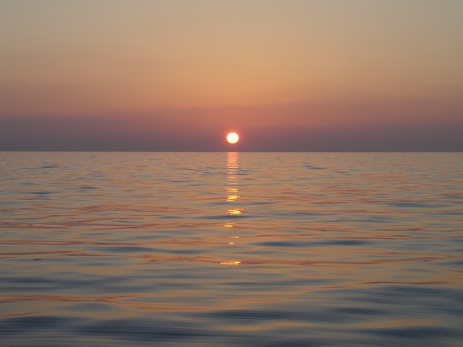 Sunset on calm water May 7th