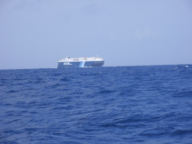 One of several large ships we encountered. The square shaped design maximizes the cargo they can carry through the Panama Canal.
